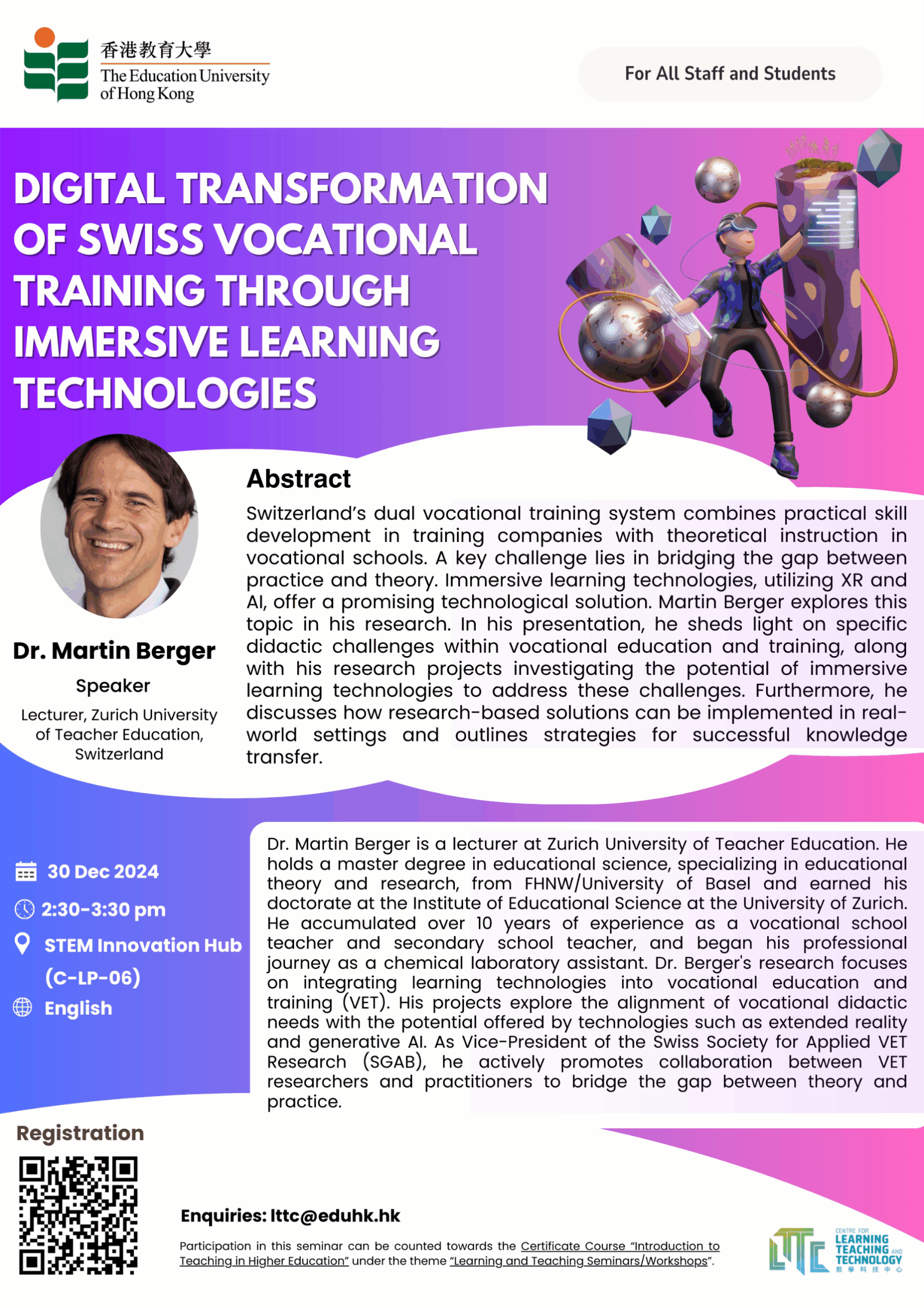 30 December, 2024 Digital transformation of Swiss vocational training through immersive learning technologies STEM Innovation Hub (C-LP-06)