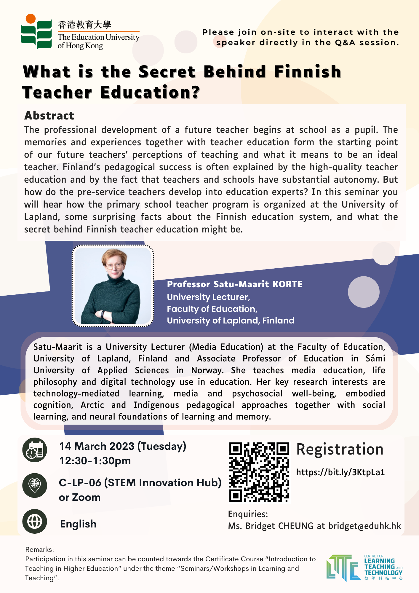 Participation in this seminar can be counted towards the Certificate Course, “Introduction to Teaching in Higher Education” under the theme “Seminars/Workshops in Learning and Teaching”.