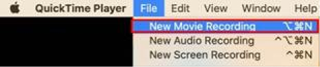 5. Click New Movie Recording, then click the small arrow next to the record bottom.