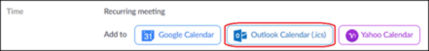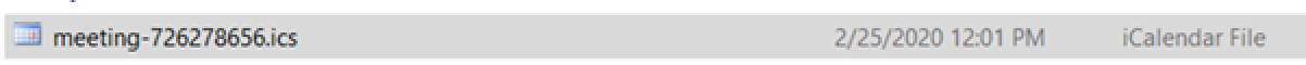 This will download a .ics file to your computer’s Download folder. The .ics file include the Zoom meeting details, when you open the file, recurring schedule will be marked on your Outlook Calendar.
